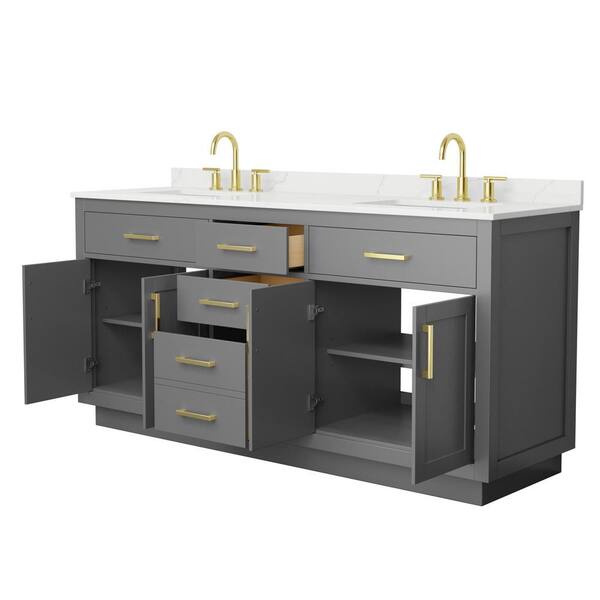 Beckett TK 72 in. W x 22 in. D x 35 in. H Double Sink Bath Vanity in Dark Gray with Brushed Gold Trim Giotto Quartz Top