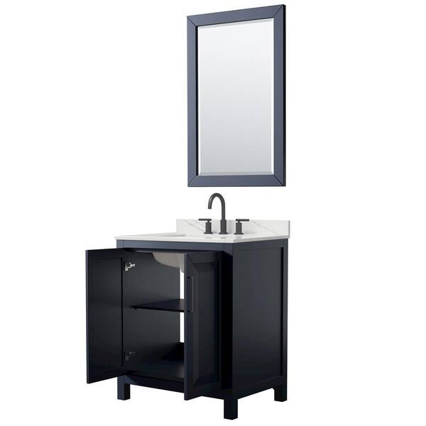 Daria 30 in. W. x 22 in. D x 35.75 in. H Single Bath Vanity in Dark Blue with Giotto Quartz Top and 24 in. Mirror