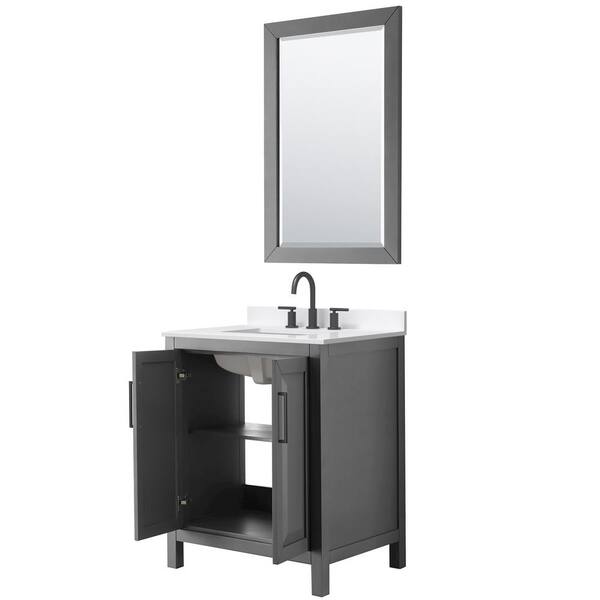 Daria 30 in. W. x 22 in. D x 35.75 in. H Single Bath Vanity in Dark Gray with White Quartz Top and 24 in. Mirror