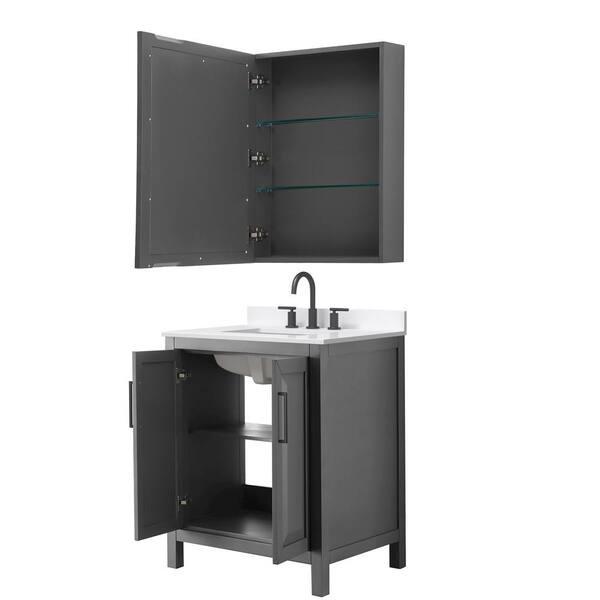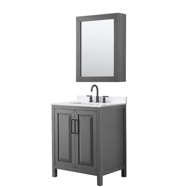 Daria 30 in. W. x 22 in. D x 35.75 in. H Single Bath Vanity in Dark Gray with White Quartz Top and Medicine Cabinet