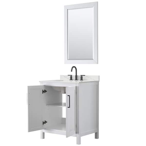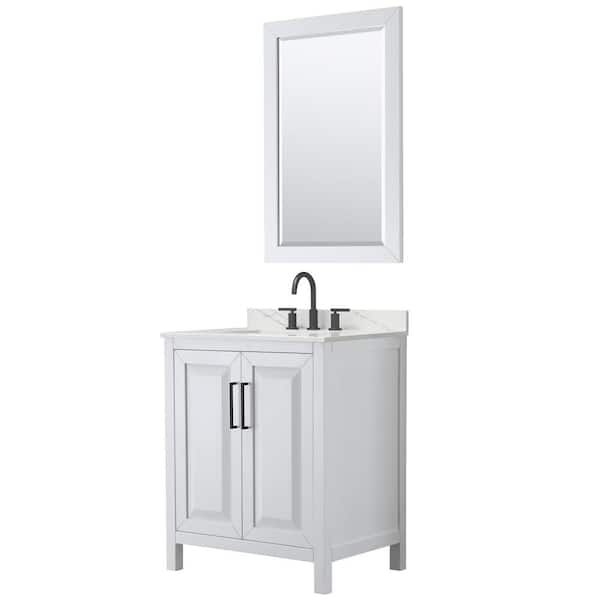 Daria 30 in. W. x 22 in. D x 35.75 in. H Single Bath Vanity in White with Giotto Quartz Top and 24 in. Mirror
