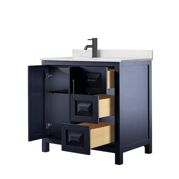 Daria 36 in. W. x 22 in. D x 35.75 in. H Single Bath Vanity in Dark Blue with Giotto Quartz Top