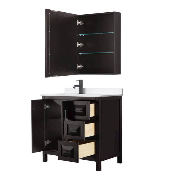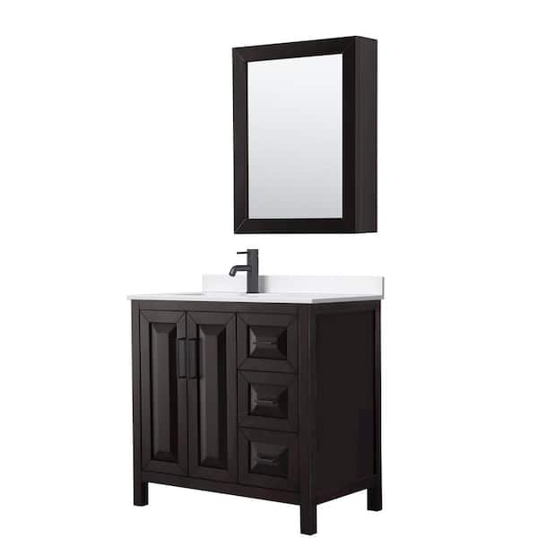Daria 36 in. W x 22 in. D x 35.75 in. H Single Bath Vanity in Dark Espresso with White Quartz Top and Mirror