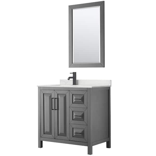 Daria 36 in. W x 22 in. D x 35.75 in. H Single Bath Vanity in Dark Gray with Giotto Quartz Top and 24 in. Mirror