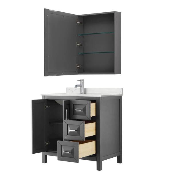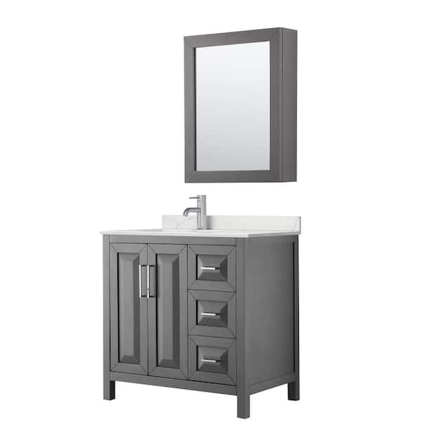 Daria 36 in. W x 22 in. D x 35.75 in. H Single Bath Vanity in Dark Gray with Giotto Quartz Top and Mirror