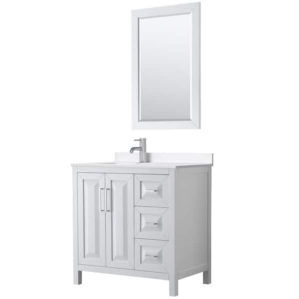 Daria 36 in. W x 22 in. D x 35.75 in. H Single Bath Vanity in White with White Quartz Top and 24 in. Mirror