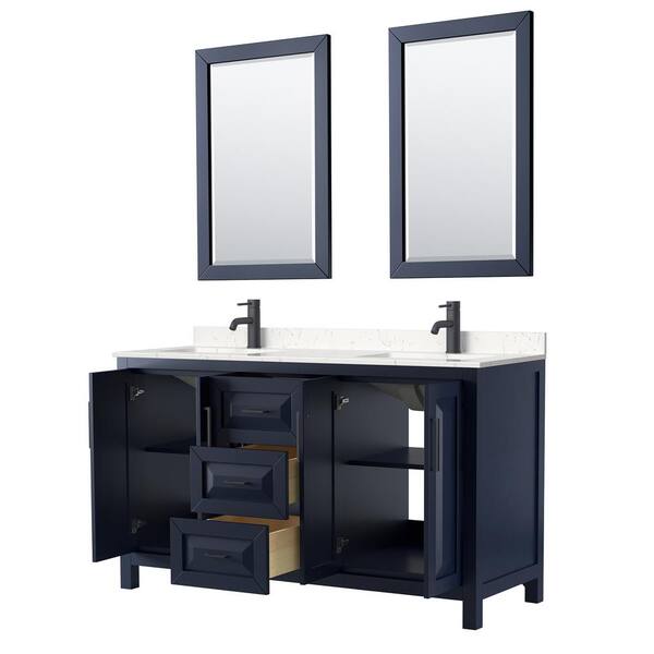 Daria 60 in. W x 22 in. D x 35.75 in. H Double Bath Vanity in Dark Blue with Carrara Cultured Marble Top, 24 in. Mirrors