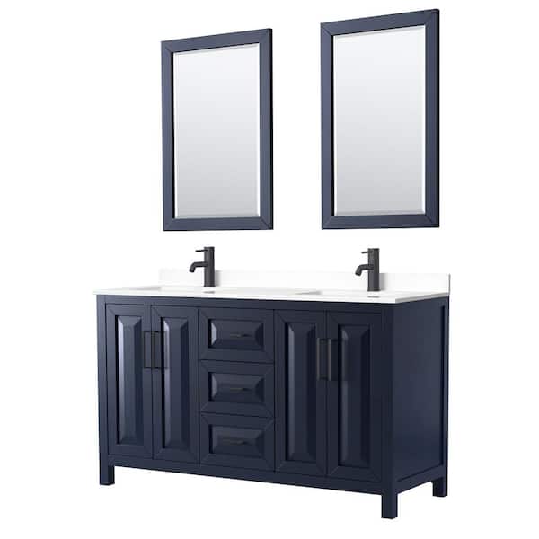 Daria 60 in. W x 22 in. D x 35.75 in. H Double Bath Vanity in Dark Blue with White Cultured Marble Top, 24 in. Mirrors