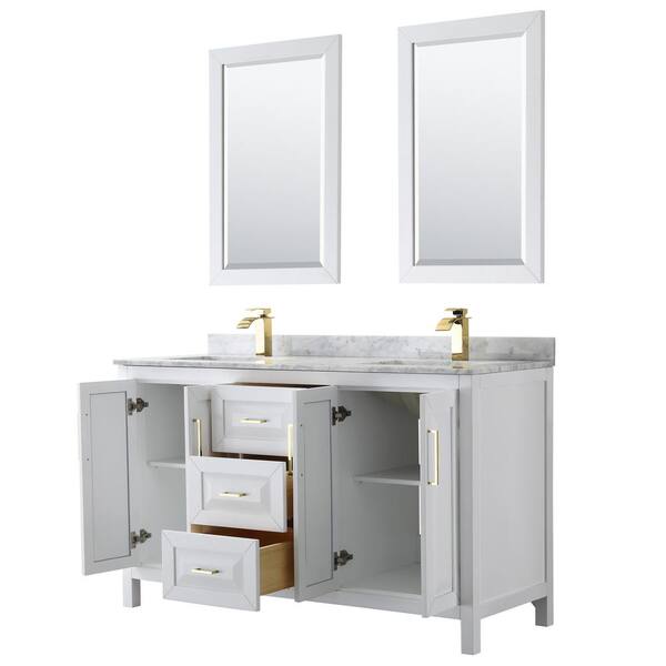 Daria 60 in. W x 22 in. D x 35.75 in. H Double Sink Bath Vanity in White with White Carrara Marble Top and 24" Mirrors