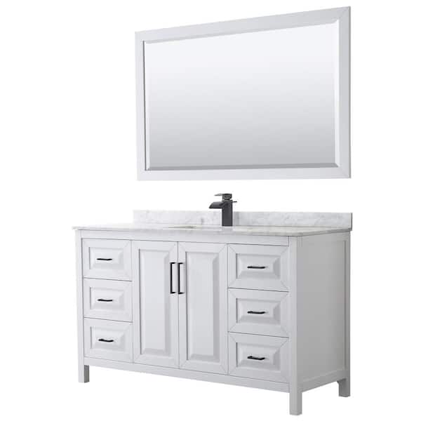 Daria 60 in. W x 22 in. D x 35.75 in. H Single Bath Vanity in White with White Carrara Marble Top and 58 in. Mirror