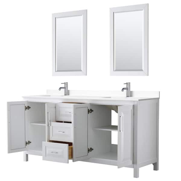 Daria 72 in. W x 22 in. D Double Vanity in White with Cultured Marble Vanity Top in White with Basins and Mirrors