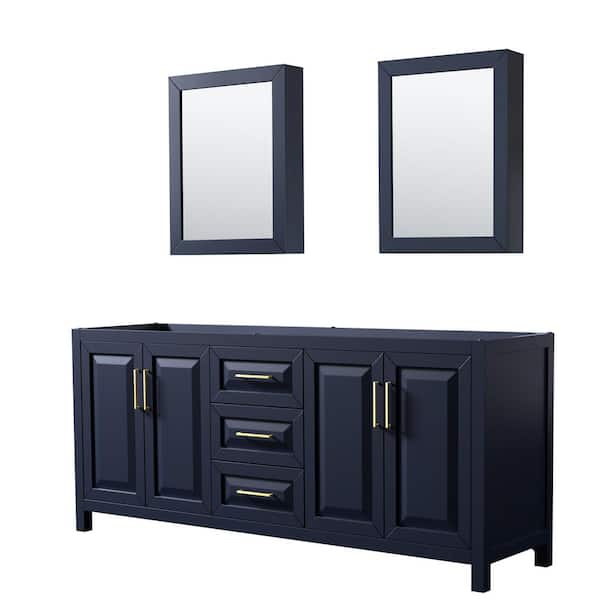 Daria 78.75 in. Double Bathroom Vanity Cabinet Only with Medicine Cabinet Mirrors in Dark Blue