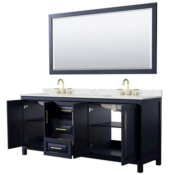 Daria 80 in. W x 22 in. D x 35.75 in. H Double Bath Vanity in Dark Blue with Giotto Quartz Top and 70 in. Mirror
