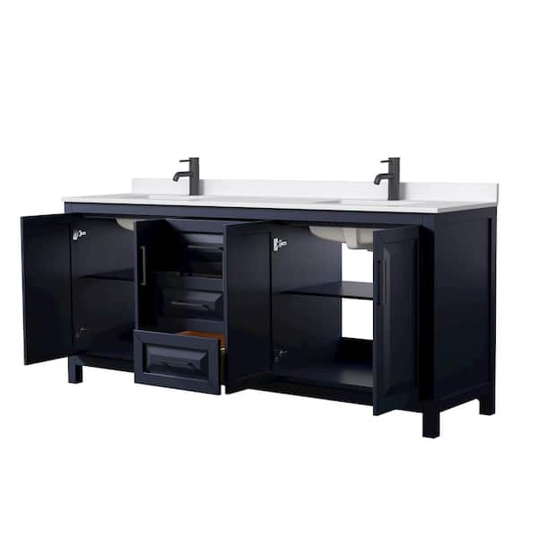 Daria 80 in. W. x 22 in. D x 35.75 in. H Double Bath Vanity in Dark Blue with White Quartz Top
