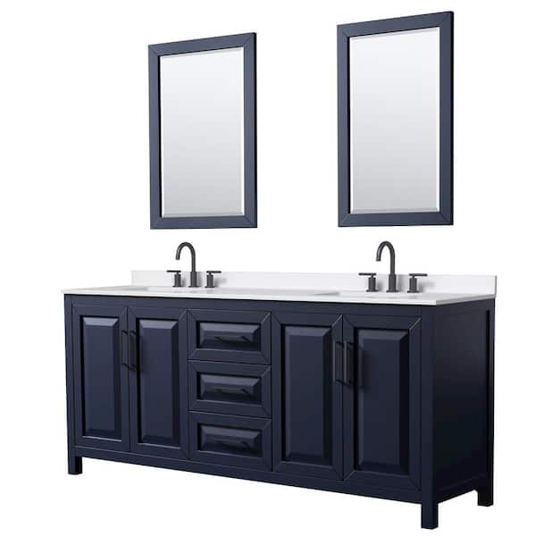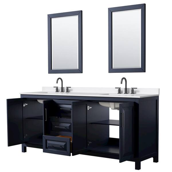 Daria 80 in. W x 22 in. D x 35.75 in. H Double Bath Vanity in Dark Blue with White Quartz Top and 24 in. Mirrors