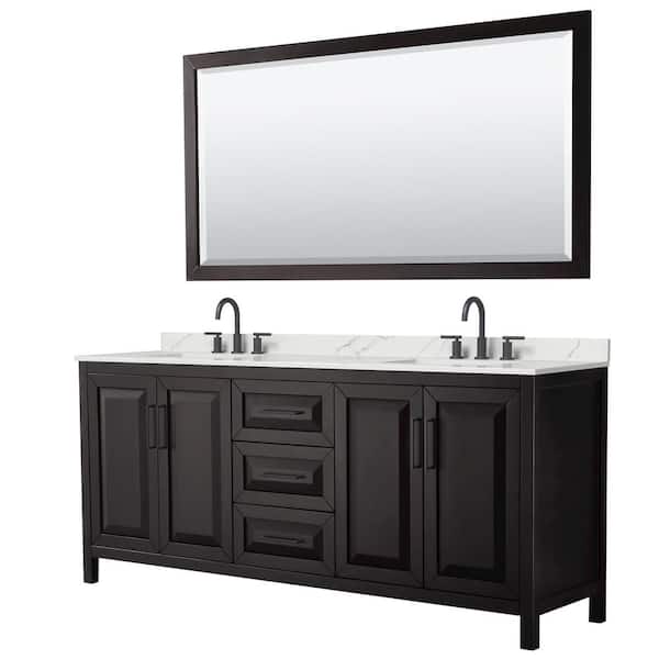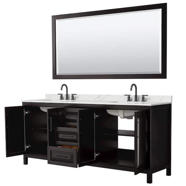 Daria 80 in. W x 22 in. D x 35.75 in. H Double Bath Vanity in Dark Espresso with Giotto Quartz Top and 70 in. Mirror
