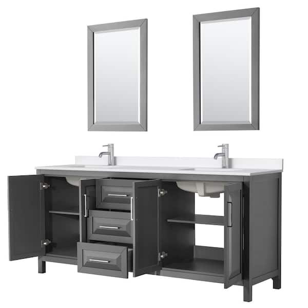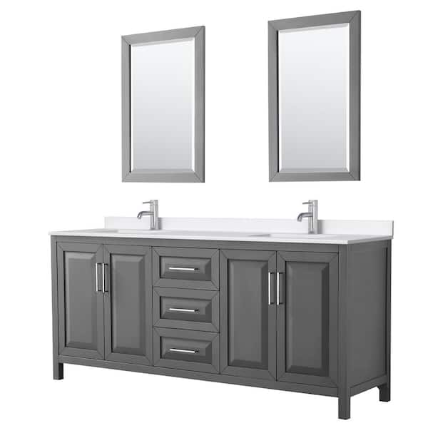 Daria 80 in. W x 22 in. D x 35.75 in. H Double Bath Vanity in Dark Gray with White Quartz Top and 24 in. Mirrors