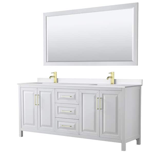 Daria 80 in. W x 22 in. D x 35.75 in. H Double Bath Vanity in White with White Quartz Top and 70 in. Mirror