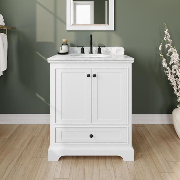 • Deborah 30 in bathroom vanity with white carrara marble top