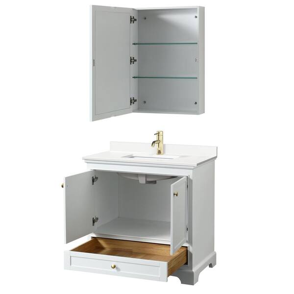 Deborah 36 in. W x 22 in. D x 35 in. H Single Bath Vanity in White with White Quartz Top and MC Mirror