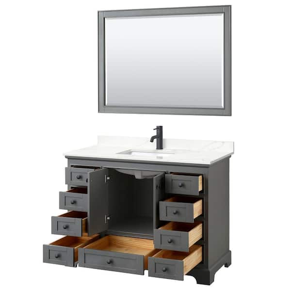 Deborah 48 in. W x 22 in. D x 35 in. H Single Bath Vanity in Dark Gray with Giotto Quartz Top and 46 in. Mirror
