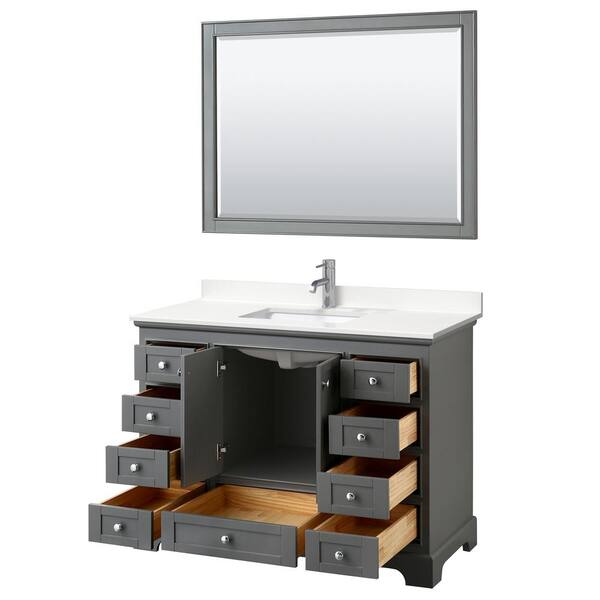 Deborah 48 in. W x 22 in. D x 35 in. H Single Bath Vanity in Dark Gray with White Quartz Top and 46 in. Mirror