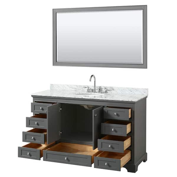 Deborah 60 in. Single Vanity in Dark Gray with Marble Vanity Top in White Carrara with White Basin and 58 in. Mirror