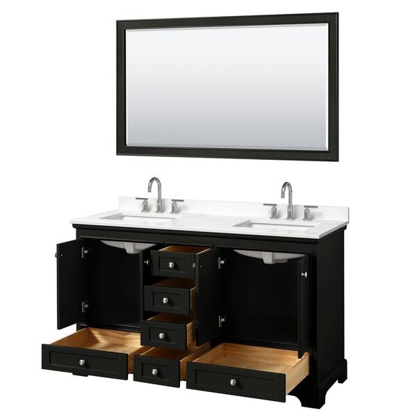 Deborah 60 in. W x 22 in. D x 35 in. H Double Bath Vanity in Dark Espresso with White Quartz Top and 58 in. Mirror