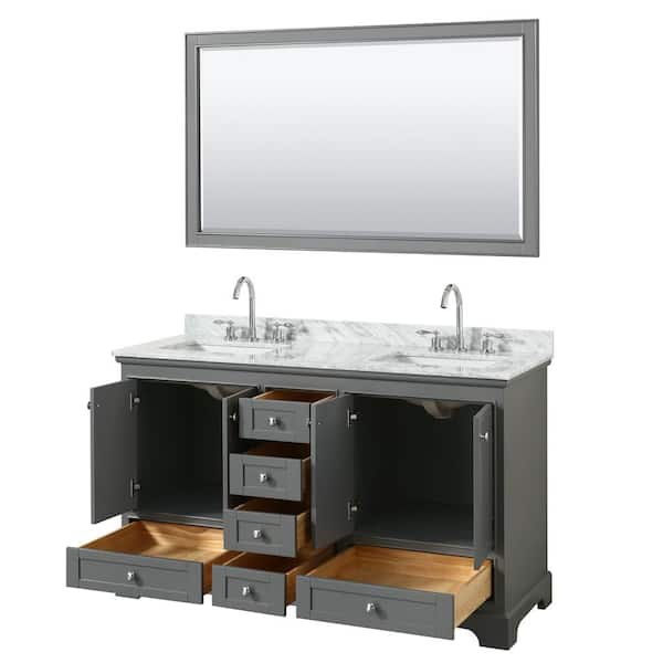 Deborah 60 in. W x 22 in. D x 35 in. H Double Bath Vanity in Dark Gray with White Carrara Marble Top and 58 in. Mirror