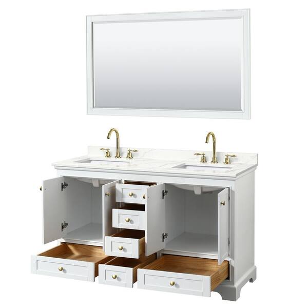 Deborah 60 in. W x 22 in. D x 35 in. H Double Bath Vanity in White with Giotto Quartz Top and 58 in. Mirror
