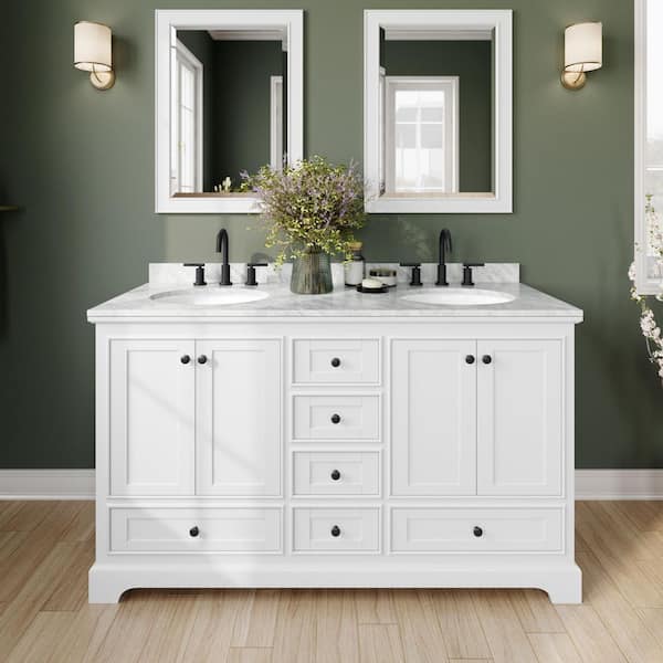 Deborah 60 in. W x 22 in. D x 35 in. H Double Bath Vanity in White with White Carrara Marble Top & Med Cab Mirrors