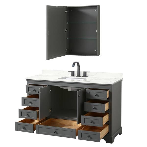 Deborah 60 in. W x 22 in. D x 35 in. H Single Bath Vanity in Dark Gray with Giotto Quartz Top and MC Mirror