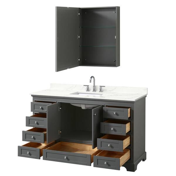 Deborah 60 in. W x 22 in. D x 35 in. H Single Bath Vanity in Dark Gray with Giotto Quartz Top and MC Mirror