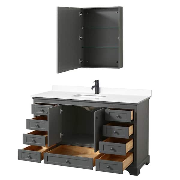Deborah 60 in. W x 22 in. D x 35 in. H Single Bath Vanity in Dark Gray with White Cultured Marble Top and Mirror