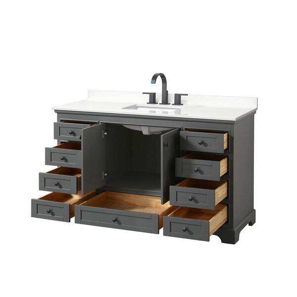Deborah 60 in. W x 22 in. D x 35 in. H Single Bath Vanity in Dark Gray with White Quartz Top