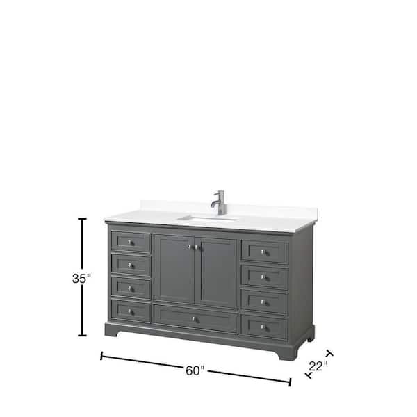 Deborah 60in.Wx22 in.D Single Vanity in Dark Gray with Cultured Marble Vanity Top in White with White Basin