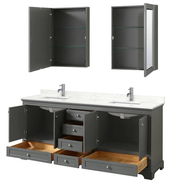 Deborah 80 in. W x 22 in. D x 35 in. H Double Bath Vanity in Dark Gray with Giotto Quartz Top and MC Mirrors
