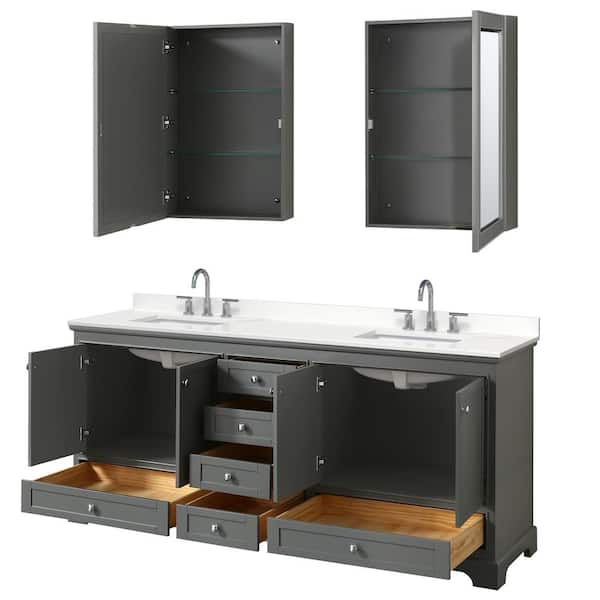 Deborah 80 in. W x 22 in. D x 35 in. H Double Bath Vanity in Dark Gray with White Quartz Top and MC Mirrors
