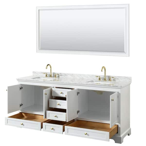 Deborah 80 in. W x 22 in. D x 35 in. H Double Sink Bath Vanity in White with White Carrara Marble Top and 70 in. Mirror