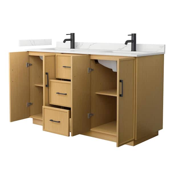 Elan TK 60 in. Double Freestanding Light Oak Bath Vanity with Giotto Quartz Top (Assembled)