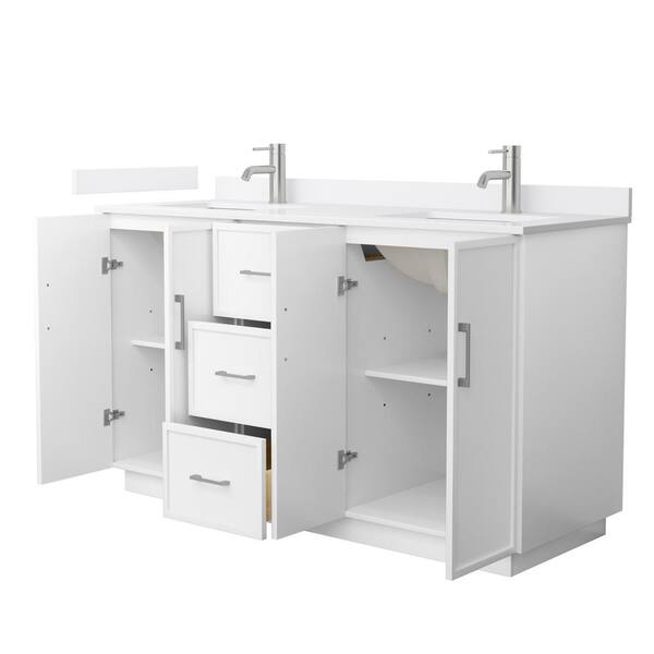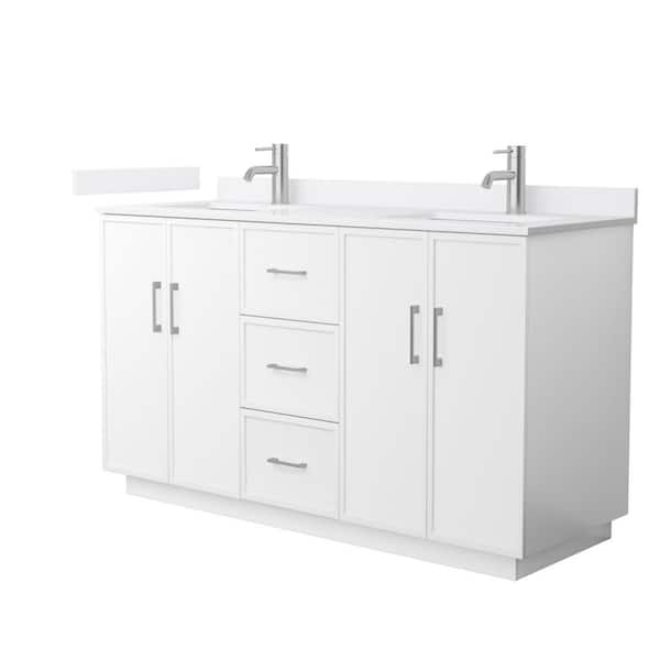 Elan TK 60 in. Double Freestanding White Bath Vanity with White Cultured Marble Top (Assembled)