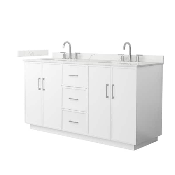 Elan TK 66 in. Double Freestanding White Bath Vanity with Giotto Quartz Top (Assembled)
