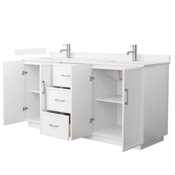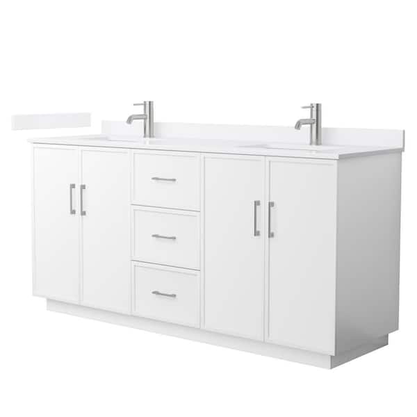 Elan TK 72 in. Double Freestanding White Bath Vanity with White Quartz Top (Assembled)