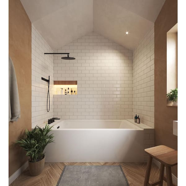 Grayley 66 in. L x 32 in. W Soaking Alcove Bathtub with Left Hand Drain in White with Matte Black Trim