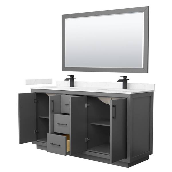 Icon 66 in. W x 22 in. D x 35 in. H Double Bath Vanity in Dark Gray with Carrara Cultured Marble Top and 58 in. Mirror