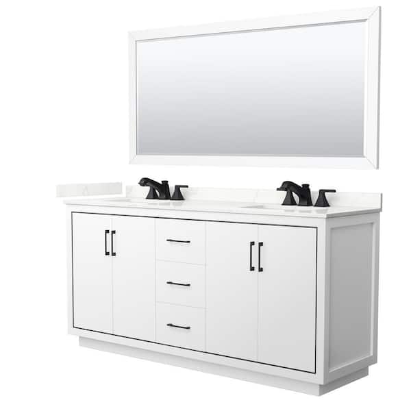Icon 72 in. W x 22 in. D x 35 in. H Double Bath Vanity in White with Giotto Quartz Top and 70 in. Mirror