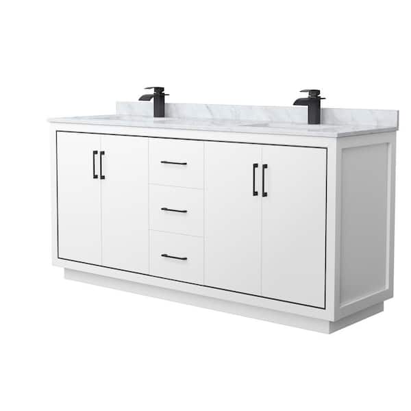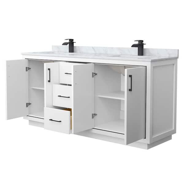 Icon 72 in. W x 22 in. D x 35 in. H Double Bath Vanity in White with White Carrara Marble Top