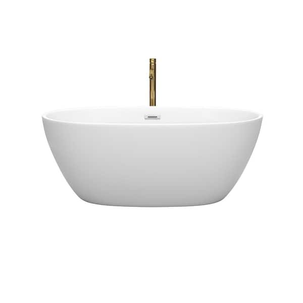 Juno 59 in. Acrylic Flatbottom Bathtub in Matte White with Polished Chrome Trim and Brushed Gold Faucet