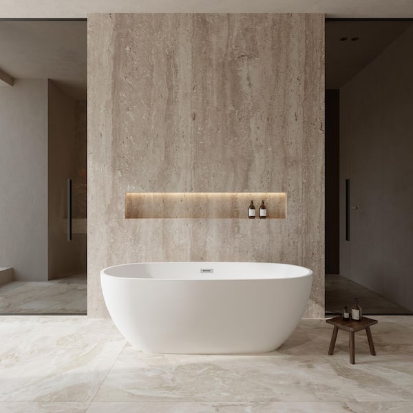 • Juno matte white 67 in x 32 in soaking freestanding bathtub