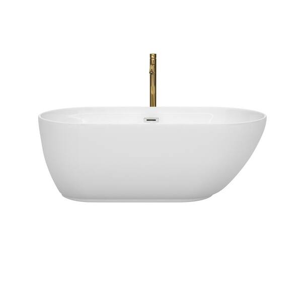Melissa 60 in. Acrylic Flatbottom Bathtub in White with Polished Chrome Trim and Brushed Gold Faucet